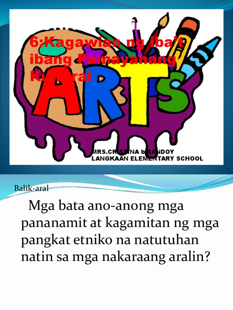Kagawian Ng Ibat Ibang Pamayanang Kultural . K To 12 Grade 4 Teacher S Guide In Arts Q1 Q4